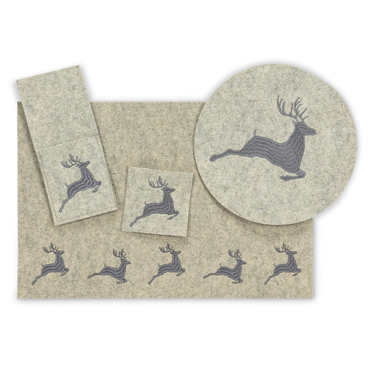 Table Runner Felt Stitched Leaping Deer