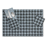 Complement your décor and protect your surfaces from watermarks with this handsome Houndstooth Coaster. Crafted out of polyester felt, this charcoal-coloured coaster features a timeless houndstooth graphic pattern for a stylish way to accessorize for any entertaining occasion. Spot clean; dry flat. Matching placemat and cutlery pocket also available.